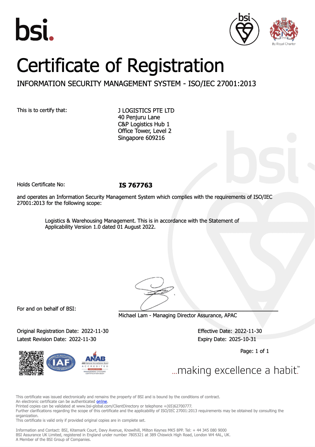 J LOGISTICS PTE LTD was incorporated in 2003 as a joint venture company with C&P Holdings Pte Ltd. We have access to C&P Holdings’ warehouse facilities (the largest in Singapore). The total combined fleet size of 250 prime movers, 84 trucks, and 50 vans.