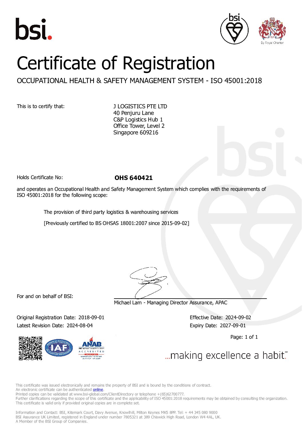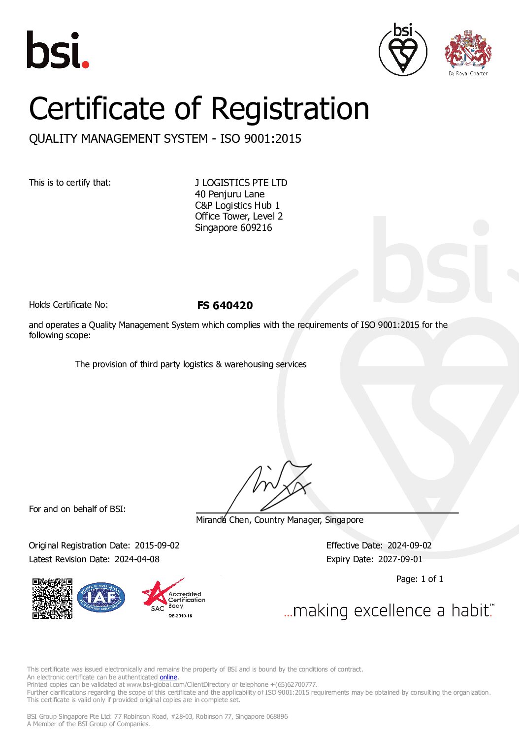 J LOGISTICS PTE LTD works toward being the best choice for logistics and warehousing services. We strongly believe that an effective Quality, Health & Safety Management System is an important part of our overall business strategy.